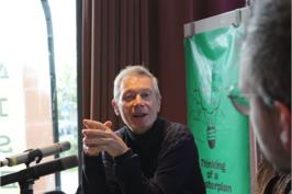 Aan de tweede tafel de meedenkende outsiders: Hans Goossens, journalist en commentator van De Limburger, Ink Caanen, docent Europese Studies aan de UM.