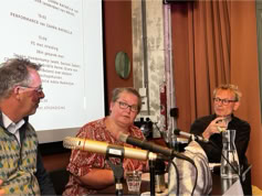 Aan de tweede tafel de meedenkende outsiders: Hans Goossens, journalist en commentator van De Limburger, Ink Caanen, docent Europese Studies aan de UM.